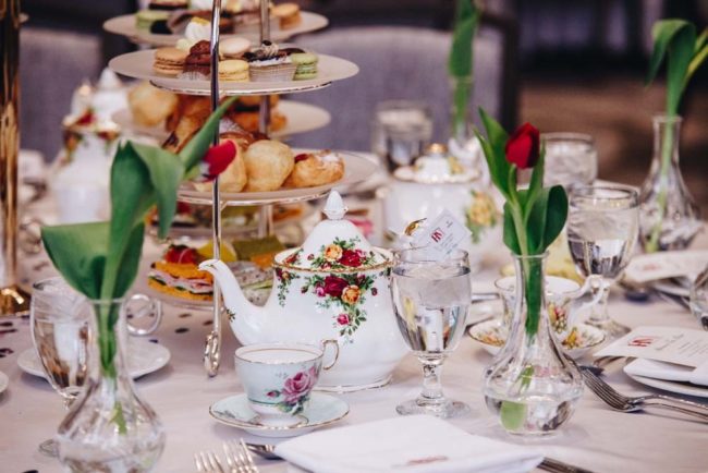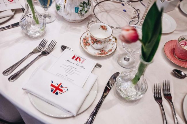 In terms of décor, we think you can keep it quite simple with some colourful, enriched fresh flowers. Aiming to match the florals to the rest of the tableware is definitely a must to ensure a beautiful, royal tablescape. At our Royal High Tea Party in the Grand Banking Hall, tables were dressed with sensational florals provided by Quince Flowers, as well as British-themed confetti sprinkled around. Don’t forget to incorporate the British flag wherever you can for that pop of colour!
