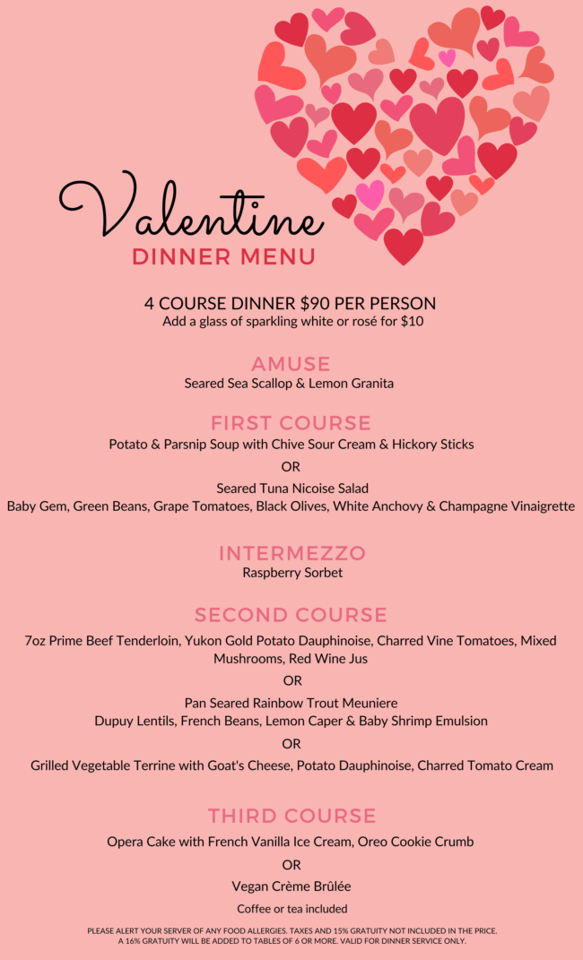 We will also be serving this four-course prix fixe dinner on Saturday, February 15!