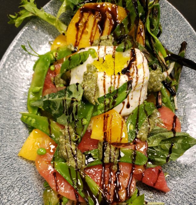 - 8. Plate the Burrata, heirloom tomatoes and snap pea arugula mixture together. Play around with plating!