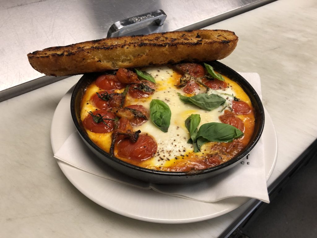 - Transfer the sauce into a baking pan crack 4 eggs and bake at 350F for 10-15 mins.