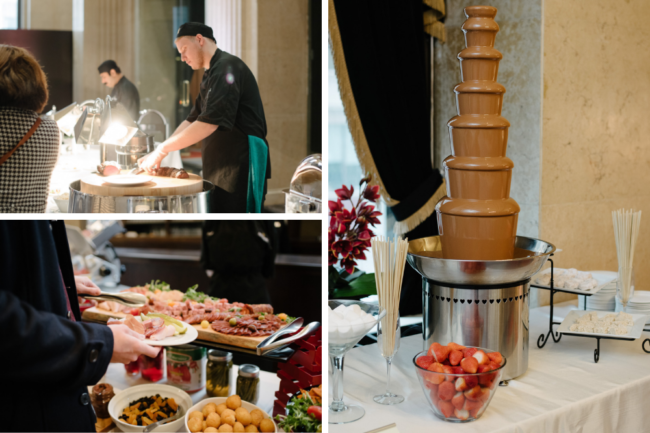 Our team of Wedding Specialists is composed of Angela, Aileen, and Vanessa; three warm, welcoming and personable women who have all played an integral role in ensuring that every One King West Hotel & Residence couple has the wedding they’ve always dreamed of. That’s why the Wedding Open House is so great – it’s because it provides couples the opportunity to sit down with these ladies one-on-one and discuss the details of their own dream wedding after experiencing the spaces and delicious eats firsthand. And the best part is, if you have more questions following the event or want to see the space again, the Wedding Specialists are always happy to welcome you back for a personalized tour or hop on a call with you!