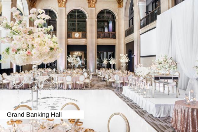 Our iconic Grand Banking Hall is transformed into a beautiful reception with the help of only the best florals and décor vendor and tends to leave mouths open in awe when attendees first walk in. This wedding venue is what typically draws couples to One King West Hotel & Residence as its elegant and historically stunning architecture inspires their dream fairytale wedding. What better way to envision your special day than by standing in the middle of it?