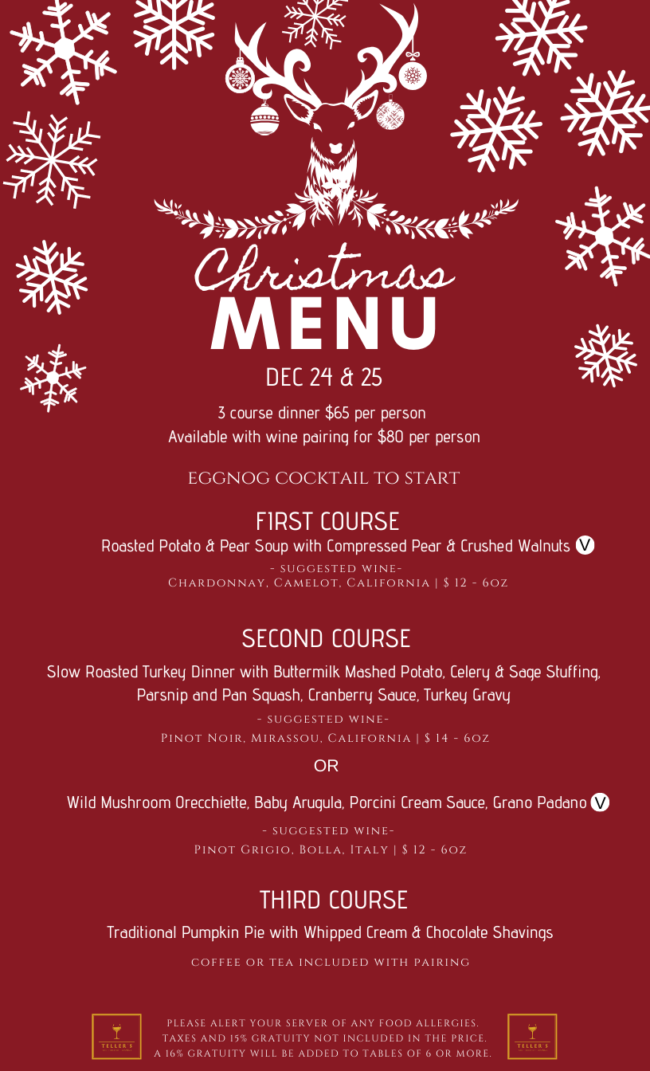 The holidays are about enjoying quality time with your loved ones but often, this time is actually spent buying presents, traveling and slaving over a grand, home-cooked meal. If you haven’t considered it before, maybe this year is the year to head out and leave the cooking to someone else? Instead of shedding blood, sweat, and tears preparing a meal for your loved ones, come enjoy a gourmet Christmas Dinner in Toronto at Teller’s Bar all together! Executive Chef Sevilla has created a three-course prix fixe dinner for both Christmas Eve and Christmas, as well as a classic à la carte dish for lunch and dinner.