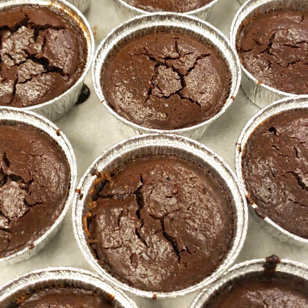 - 4. Take the desired cups and spray with pam spray and pour the brownie mixture halfway through.