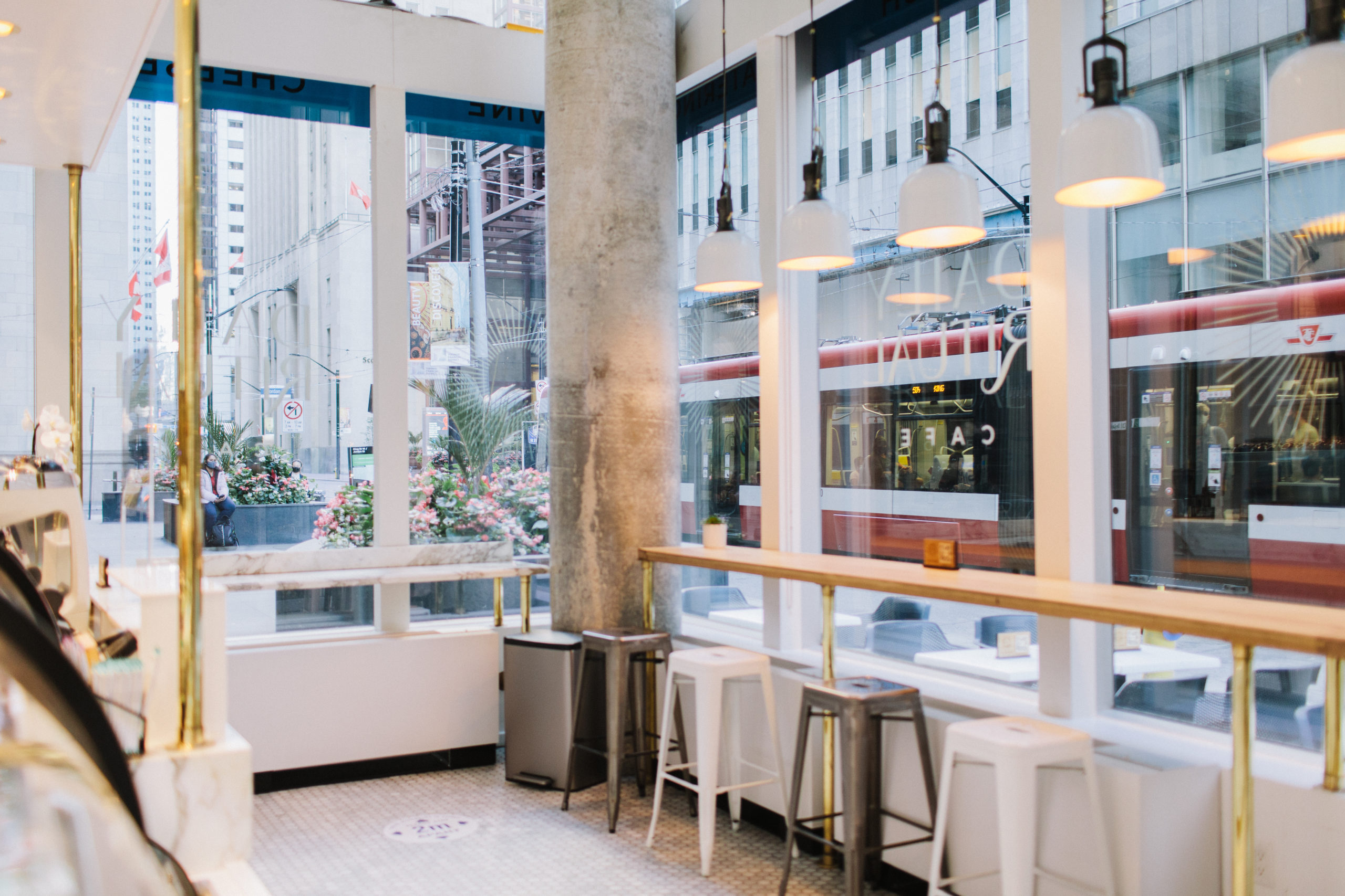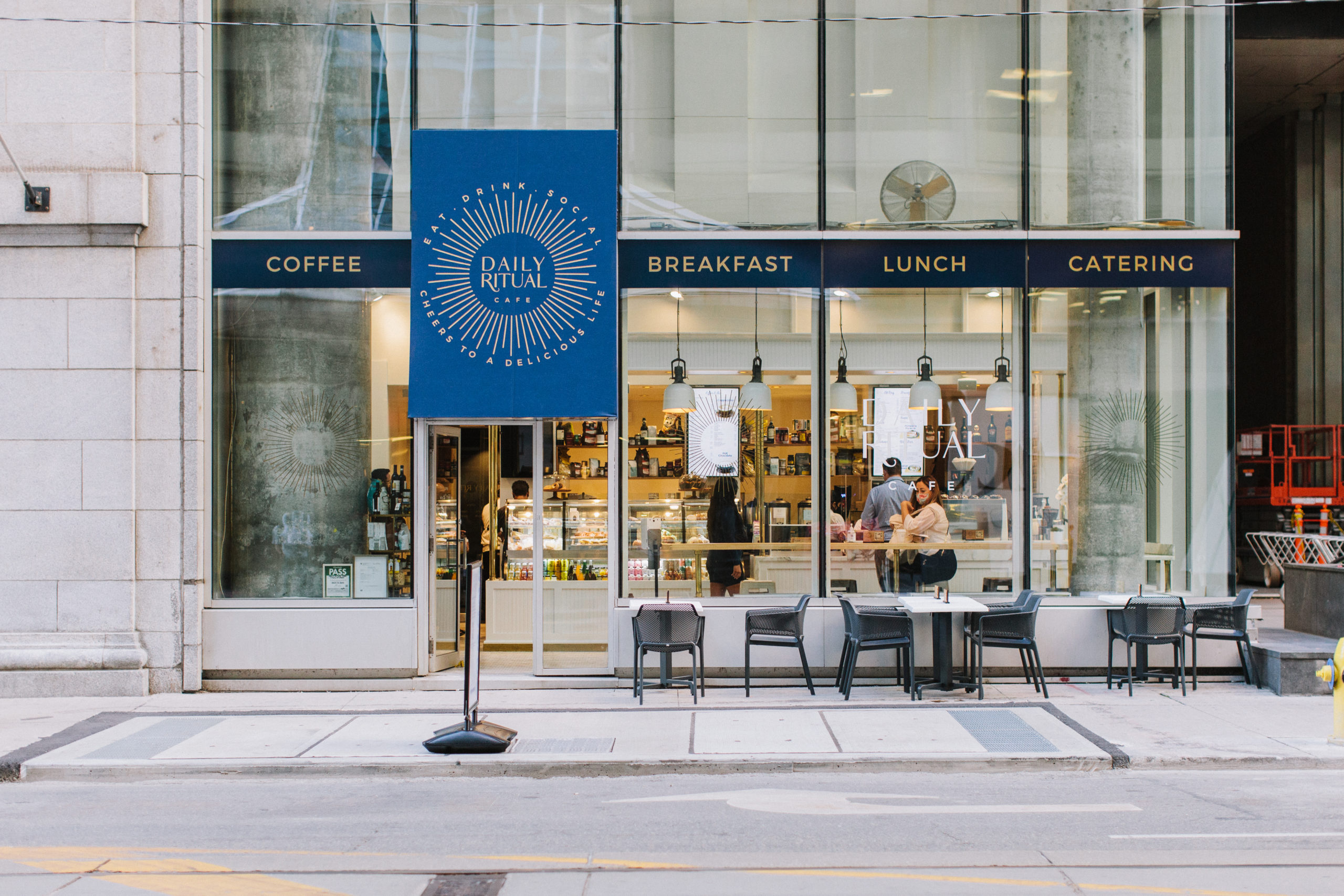 Daily Ritual Cafe is located at 1 King Street West at the corner of King and Yonge — steps from the King Street Subway Station and is accessible to guests through the One King West Hotel lobby.
