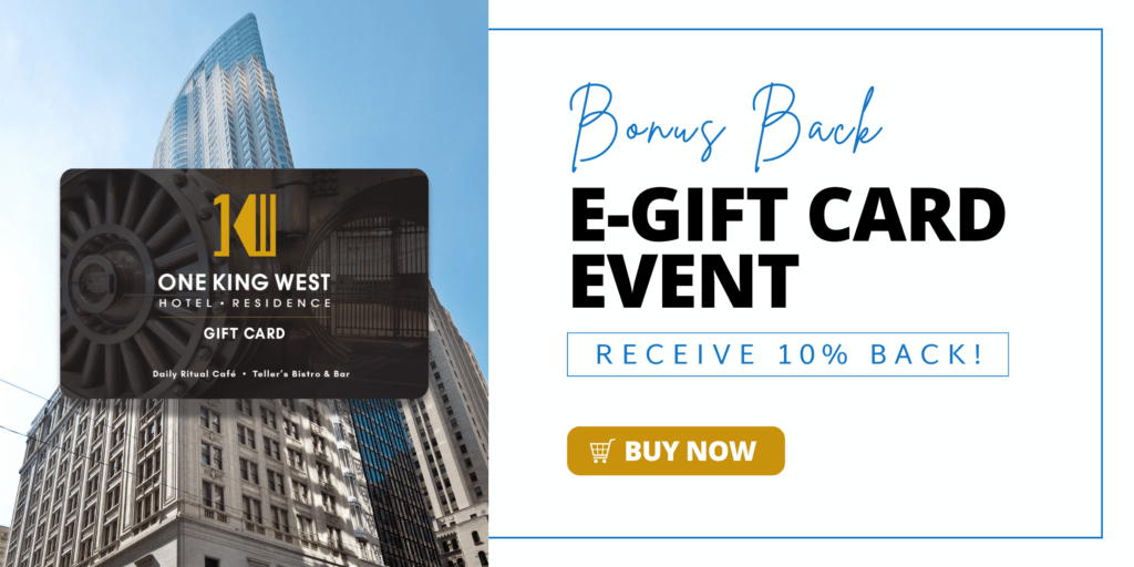 Whether it’s for a luxurious stay at One King West Hotel & Residence, a delightful meal at Teller’s Bistro & Bar, or a fresh coffee and pastry at Daily Ritual Café, our e-gift cards make the perfect present!