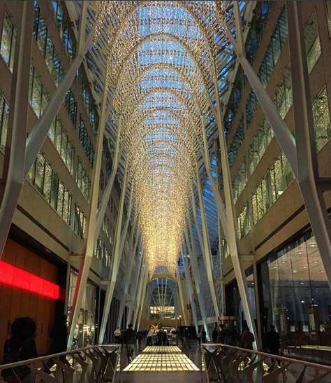 Brookfield Place’s Allen Lambert Galleria, also known as the ‘crystal cathedral of commerce’ is another spot in Toronto’s Financial District that totally transforms ahead of the holidays. This is one of the city’s favourite architectural landmarks and no matter what time of year, it is a prime location to capture some great photos for your Instagram. Although, when winter comes around, Brookfield Place gets a makeover and is dressed up in what must be thousands of lights, hanging six-stories high from the roof of the atrium making it one of the best places to take photos in Toronto. It’s quite the spectacle and something we look forward to every year to enjoy and snap photos of.