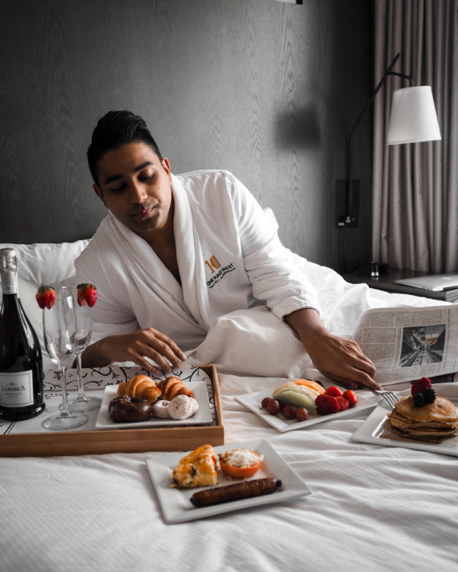 The combination of a plush bed, comfy robe and delicious spread is sure to get people’s attention on Insta! Great shot by @endoxist.