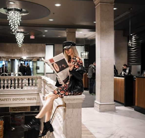 The marble throughout One King West Hotel & Residence’s lobby is the perfect backdrop, as proven by @mon_mode!